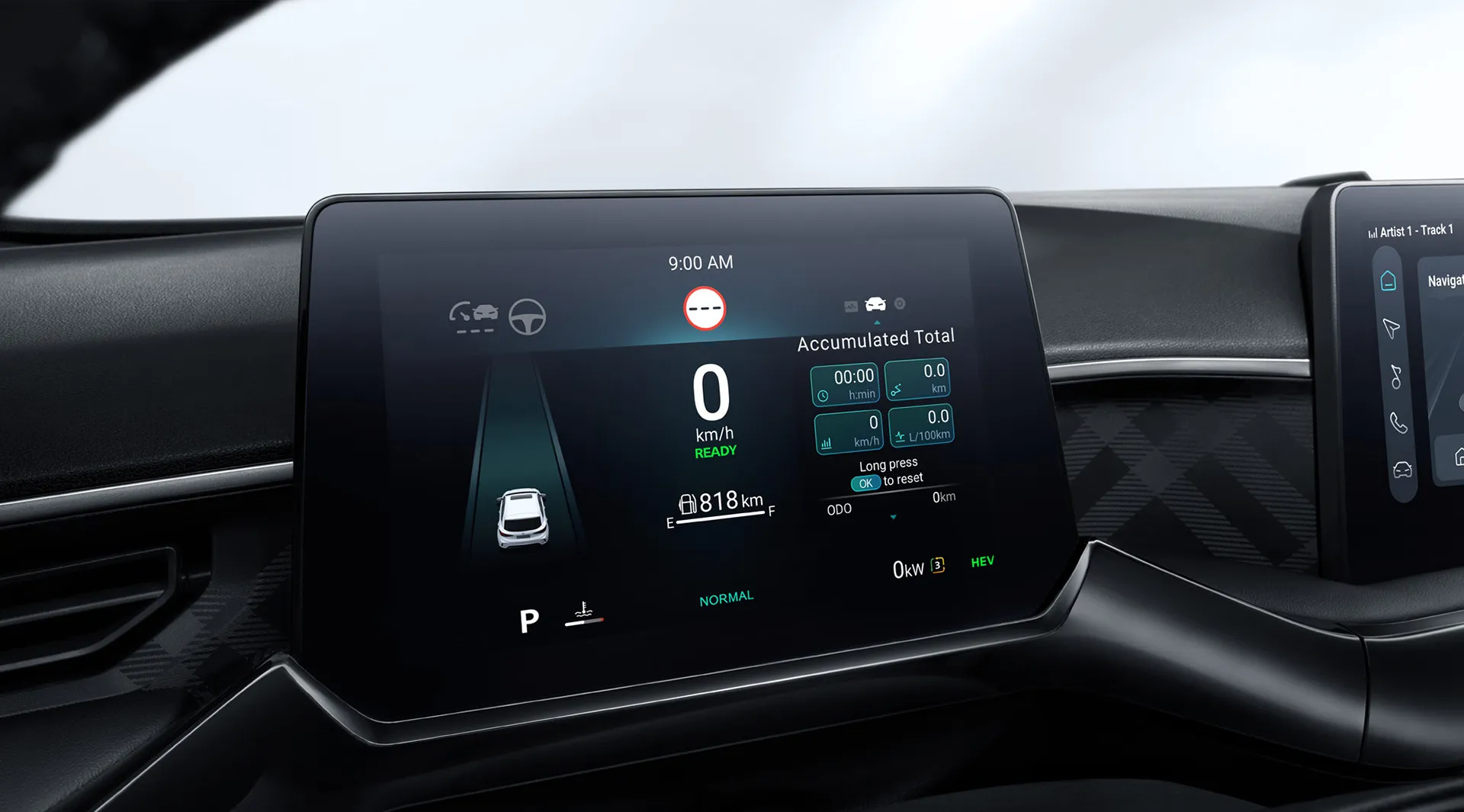 El elegante interior completamente negro se ha maximizado para una visión más clara y una comodidad total. Además, cuenta con numerosos espacios de almacenamiento y sistemas como Auto Hold y freno de mano electrónico para mayor comodidad.