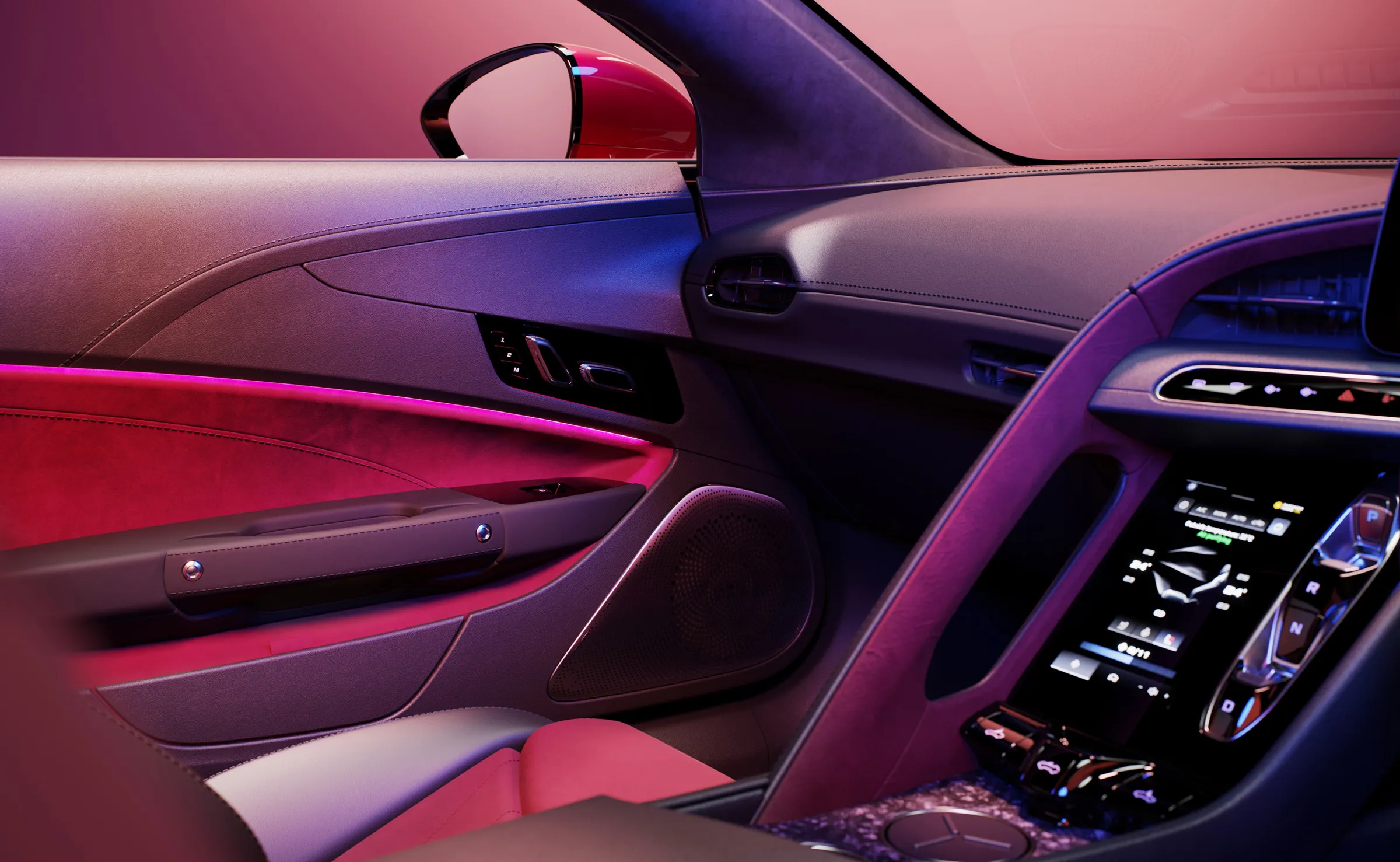 El MG Cyberster cuenta con interiores que fusionan un diseño vanguardista y la tecnología más avanzada. Su cabina, inspirada en la cabina de un caza, te envuelve en un ambiente futurista. La pantalla curva que se extiende a lo largo del tablero te conecta con todas las funciones del vehículo, mientras que los asientos deportivos te brindan la sujeción necesaria para disfrutar de una conducción emocionante.